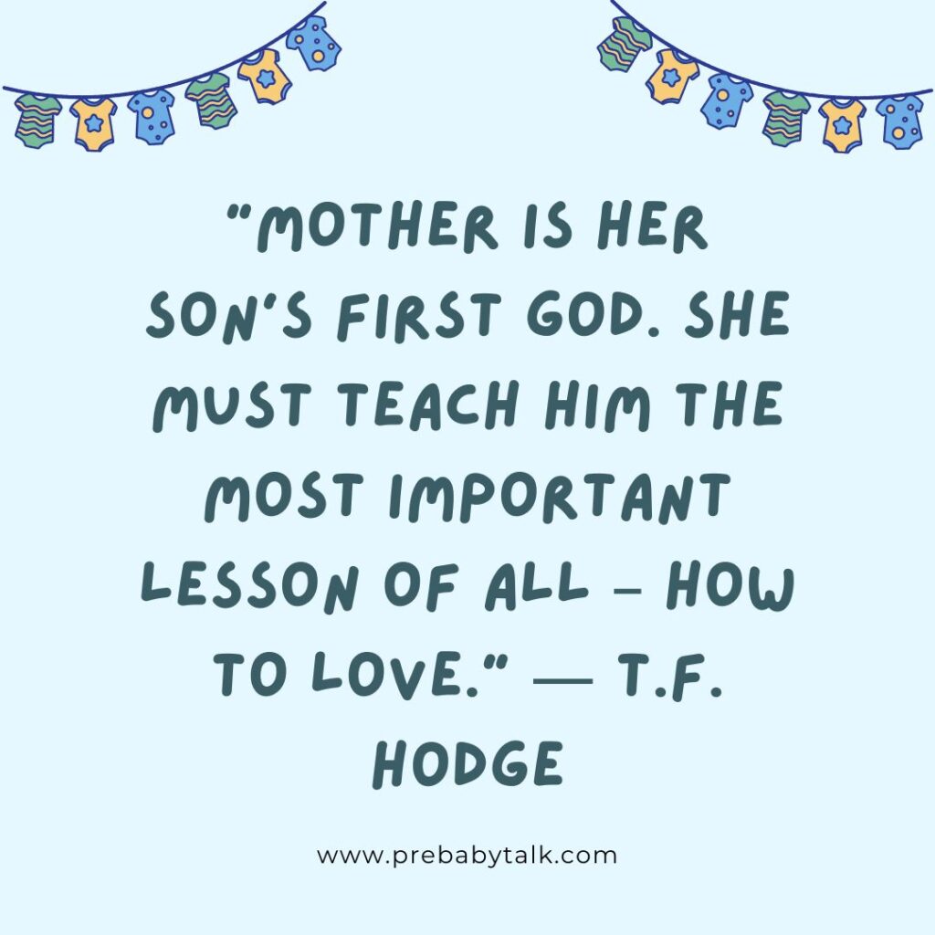 “Mother is her son’s first god. She must teach him the most important lesson of all – how to love.” — T.F. Hodge