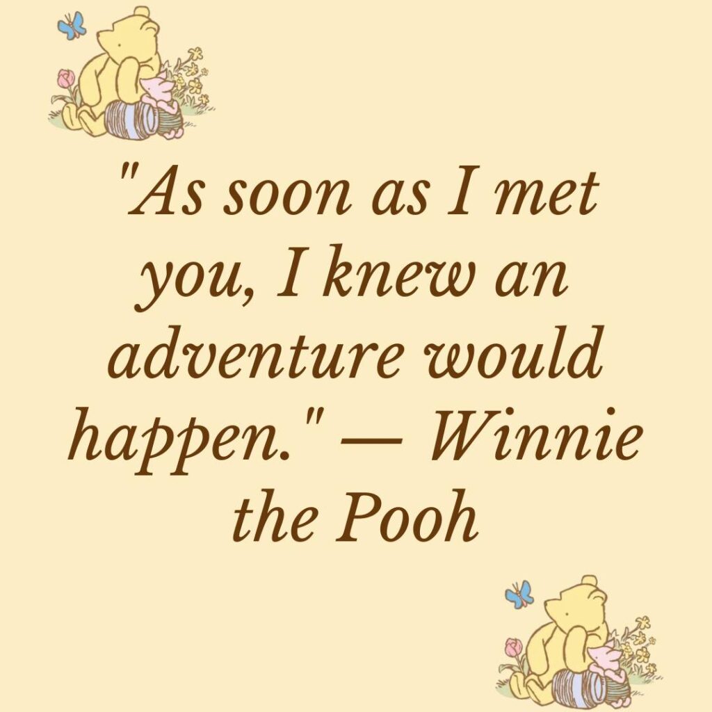 19. “As soon as I met you, I knew an adventure would happen.” — Winnie the Pooh (actually, A.A. Milne)