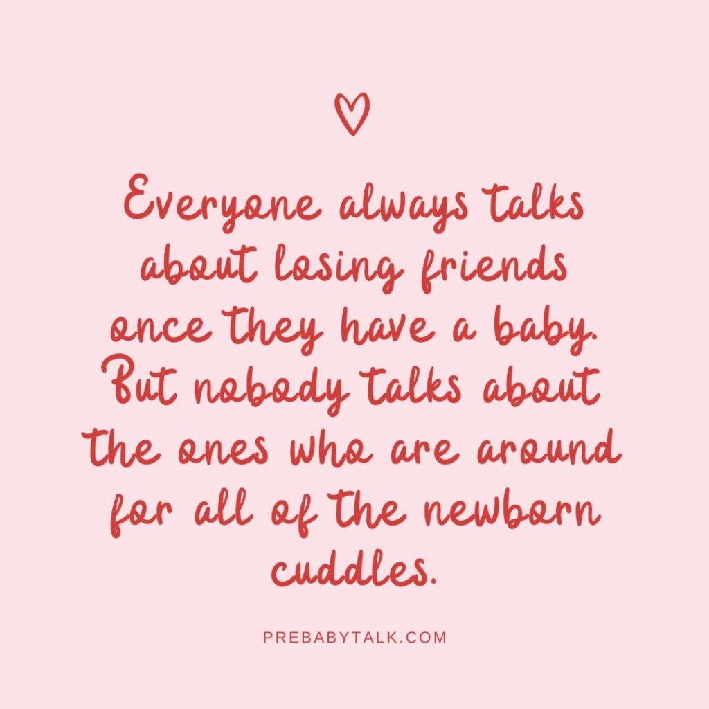 “Everyone always talks about losing friends once they have a baby. But nobody talks about the ones who are around for all of the newborn cuddles.” — Unknown