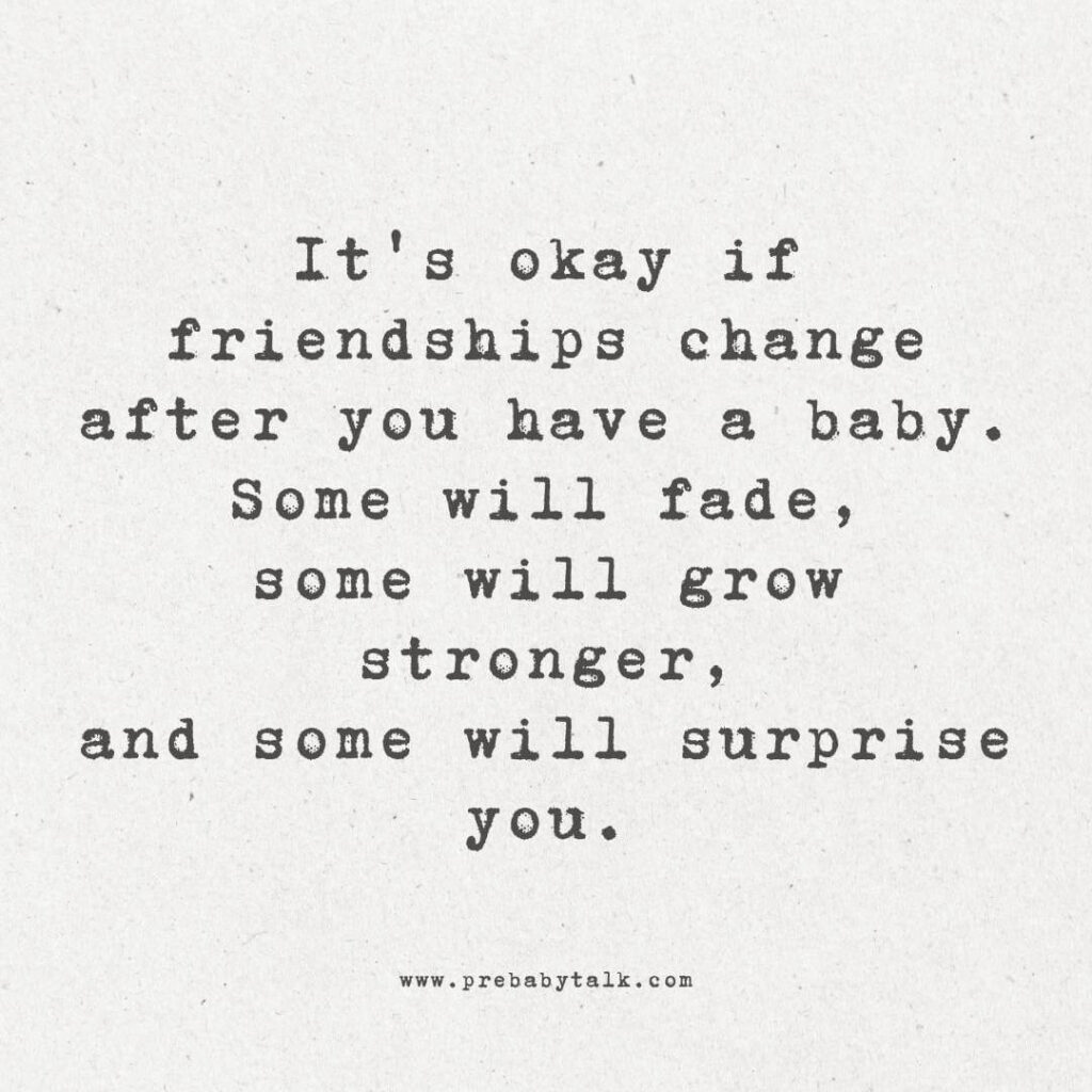 “It’s okay if friendships change after you have a baby. Some will fade, some will grow stronger, and some will surprise you.” — Unknown